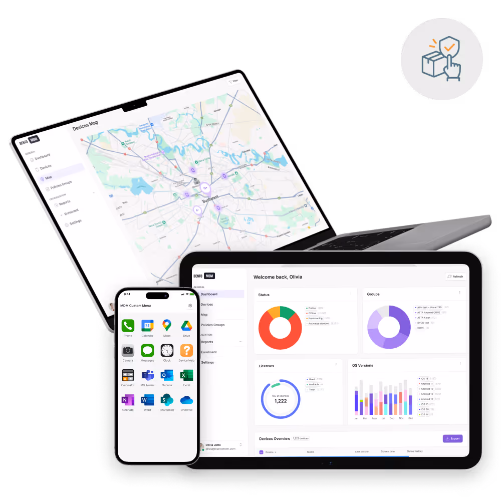Bento MDM generates reports on device usage, update status, and policy enforcement, helping businesses meet both internal standards and external compliance requirements.