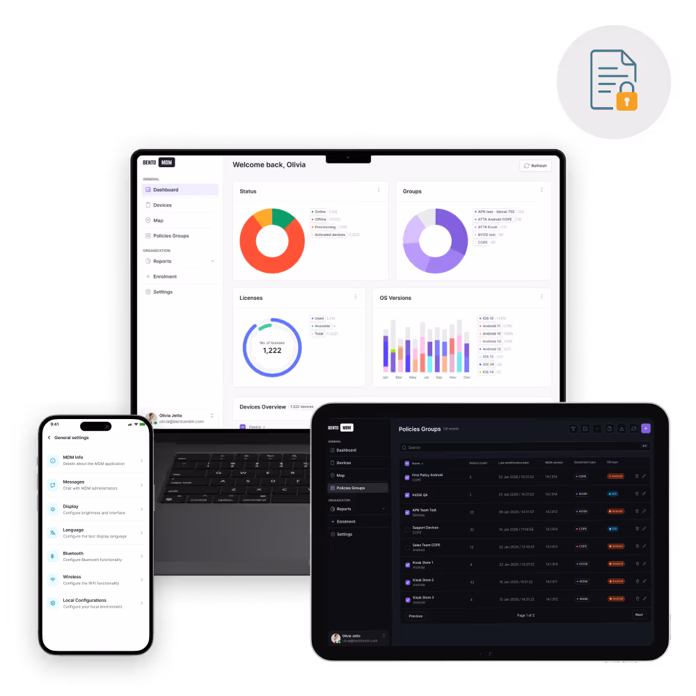 De la BYOD la dispozitive în mod kiosk, Bento MDM securizează și simplifică gestionarea dispozitivelor.
